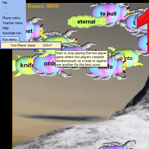 The program 'Fun Menu' ot Two Player Game menu is where you switch the game from single player mode to two player mode and visa versa. When you play in Two Player mode, the person who is logged in is the person whose game is played (score accumulates for that person), but their lifetime and current game statistics are not changed based on the two player game results. When you wish to end the Two Player game mode, call up the dialog again and choose to 'Return to Single Player' - which returns the game to the control of the currently logged in player.