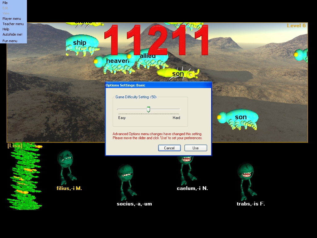 Changing the settings on the same game to medium hard in the same Hungry Frog Spanish lesson: